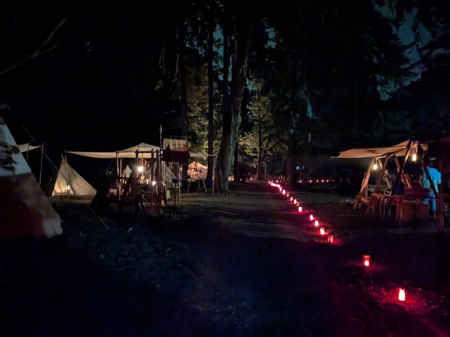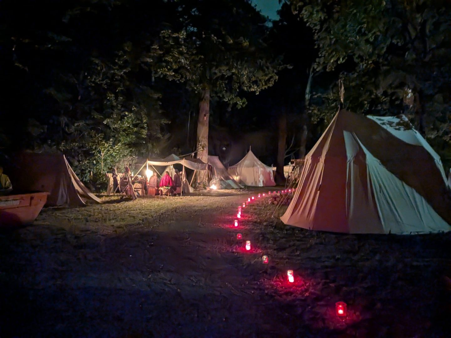 Die Veranstalter hatten mit sehr viel Aufwand eine 30m lange Palisade errichtet, welche erstürmt werden wollte. Mit 150 Darstellern aus 4 Jahrhunderten war das Lager zwar geschichtlich gemischt, aber im Schlossgelände wunderschön anzusehen. Die Wege wurden von vielen Hundert Dauerbrandkerzen erleuchtet, dazu kamen die Kochfeuer und Laternen der einzelnen Lager. Zudem haben wir viele Darsteller und Gruppen wieder getroffen und die Zeit für das ein oder andere Gespräch nutzen können.