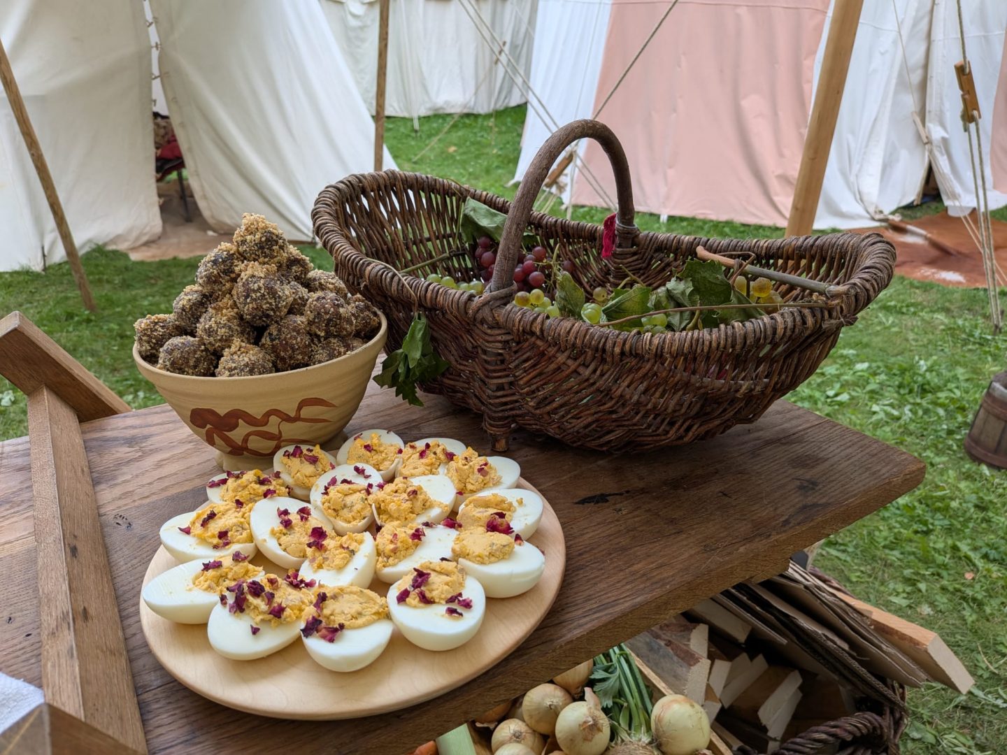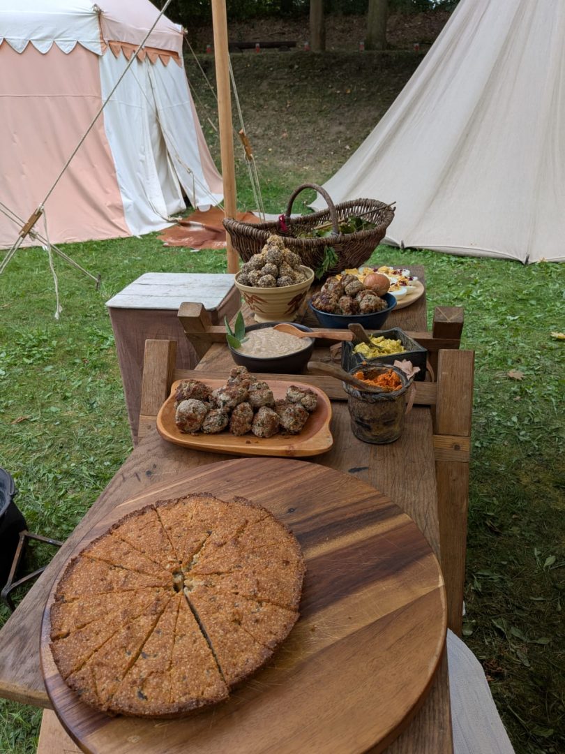 Aufgrund der für Samstag erwarteten Schlacht haben wir das Essen einfach gehalten. Es gab mittags mitgebrachte Pasteten und Kuchen, abends dann aber eine wärmende Suppe mit Wurzelgemüse und gepökeltem Fleisch.